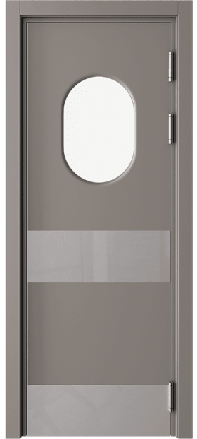 Барные двери актуальны в помещениях с повышенной проходимостью для более удобного доступа персонала к техническим комнатам, например с бара в зону кухни. Часто бывает необходимым, для обзора соседнего помещения, чтобы дверь была остекленная и стилистически оформлена. Стекло толщиной 4 мм круглой, овальной или квадратной формы, на выбор: сатинат светлый, бронзовый, графит или прозрачное стекло. Устанавливается на двери толщиной 40 мм в покрытии Эмаль (любой цвет по каталогу RAL Classic K7) и толщиной 35 мм в ПВХ-покрытиях.