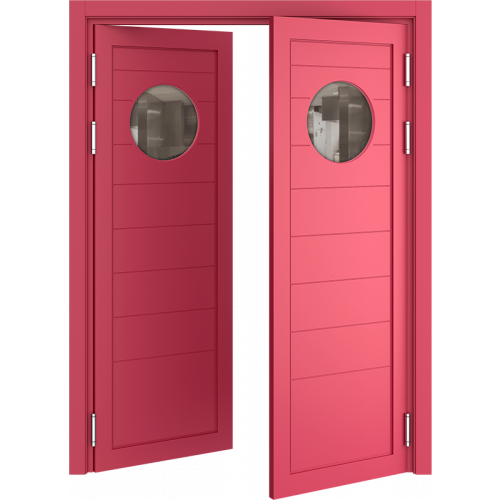 Барные двери актуальны в помещениях с повышенной проходимостью для более удобного доступа персонала к техническим комнатам, например с бара в зону кухни. Часто бывает необходимым, для обзора соседнего помещения, чтобы дверь была остекленная и стилистически оформлена. Стекло толщиной 4 мм круглой, овальной или квадратной формы, на выбор: сатинат светлый, бронзовый, графит или прозрачное стекло. Устанавливается на двери толщиной 40 мм в покрытии Эмаль (любой цвет по каталогу RAL Classic K7) и толщиной 35 мм в ПВХ-покрытиях.